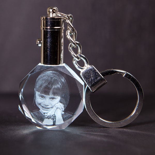 Model your favorite picture of your dear ones in a beautifully carved round key chain and just take them and their memories along with you everywhere you go. The uniquely carved crystal round keychain can be engraved with a picture of individual or a couple for long lasting memories.